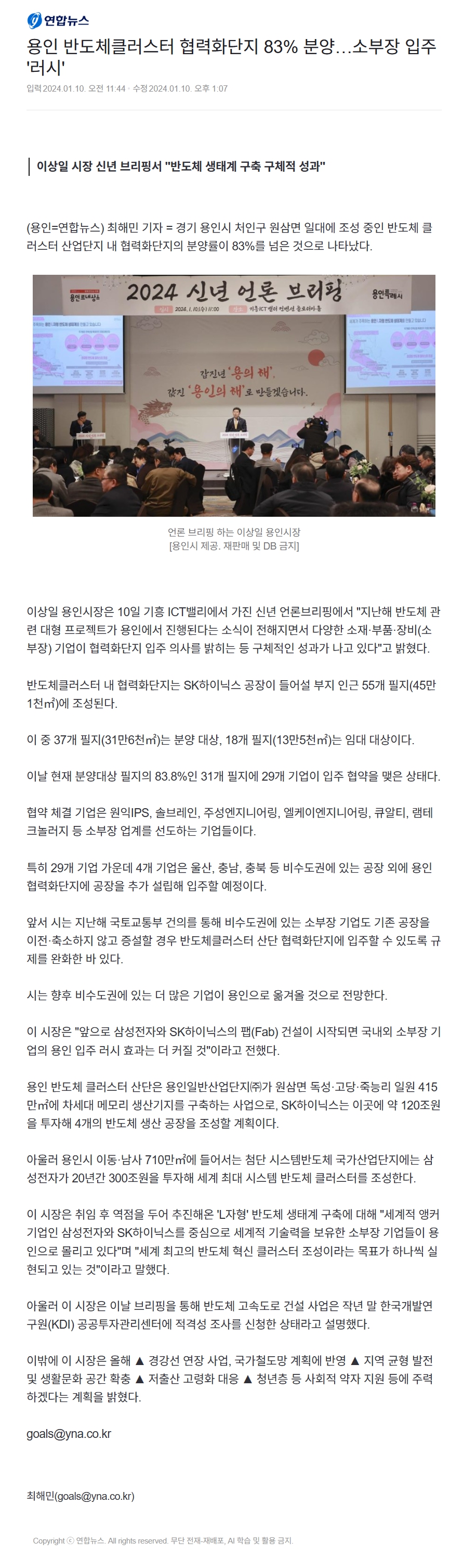 ¿ëÀÎ ¹ÝµµÃ¼Å¬·¯½ºÅÍ Çù·ÂÈ´ÜÁö 83% ºÐ¾ç¡¦¼ÒºÎÀå ÀÔÁÖ '·¯½Ã'